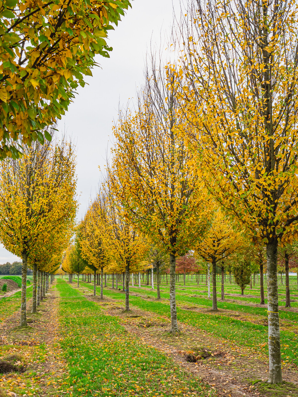 Medium-size tree with a compact, narrow pyramidal crown that becomes narrow ovoid when mature. In crown form it is comparable to ‘Frans Fontaine’, but with somewhat thicker twigs. The leaf is also somewhat bigger and a darker green than in other cultivars, and in autumn it turns brownish yellow to golden yellow. In the winter months, the withered leaf remains on the tree for a very long time, as also happens with Fagus sylvatica. Root growth is relatively close to the surface. The rotted leaves are good soil improvers. Very suitable for use in (narrow) streets and housing estates, but the slender shape can also have architectural value in gardens and parks.