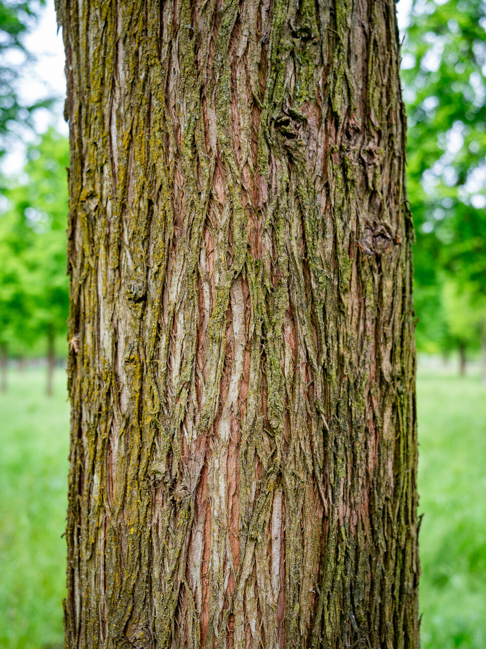 A robustly growing deciduous conifer with a narrow pyramidal crown at first that becomes broad pyramidal later. Branches grow in a regular pattern on the perfectly vertical main trunk. Young twigs slant upwards slightly: older branches are practically horizontal. Width to approx. 10 m. The trunk of mature trees becomes knotted and flakes off in small sheets. Young twigs are reddish brown. The needles grow on short and long shoots and are opposed, unlike Taxodium. Turning bronze brown to orange brown and falling off along with the short shoots in the autumn. Metasequoia was only known as a fossil until 1941 and was rediscovered by a Chinese forester in south-western China. From then on, it was once again distributed throughout the world. Has superficial resemblance to Taxodium but the manner of growth is more open and the lateral branches grow in a feathery manner.