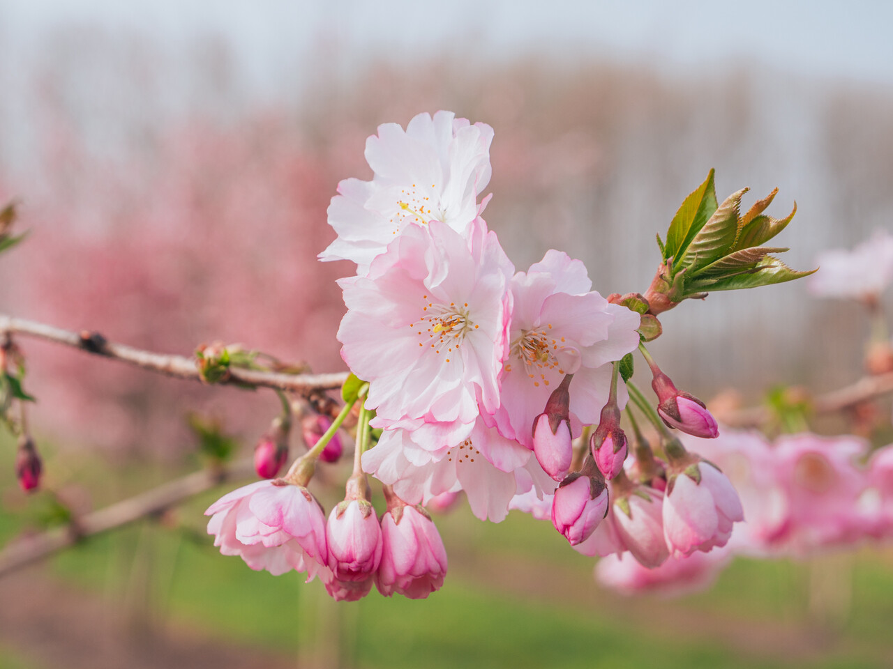 Small tree with overhanging twigs and a broad, funnel-shaped crown growing to a height of 6 - 8 m. The green, ovoid to elongated leaves taper to a long point and are 6 - 12 cm long. The leaf edge is serrated, the autumn colour (orange) yellow to red. 'Accolade' is an early-flowering cultivar with flowers in hanging bunches. In April the light pink flowers, approx. 4 cm in size and semi-double, emerge from pink flower buds. It is used as a park tree, solitary and planted in wide stretches of greenery. Prefers soils capable of providing a good deal of moisture. Prefers a light and sunny site. It is reasonably wind resistant but cannot take sea winds. Winter hardiness zone: 6a