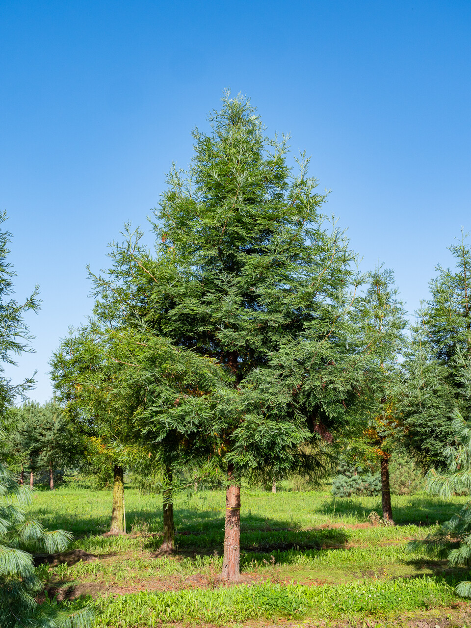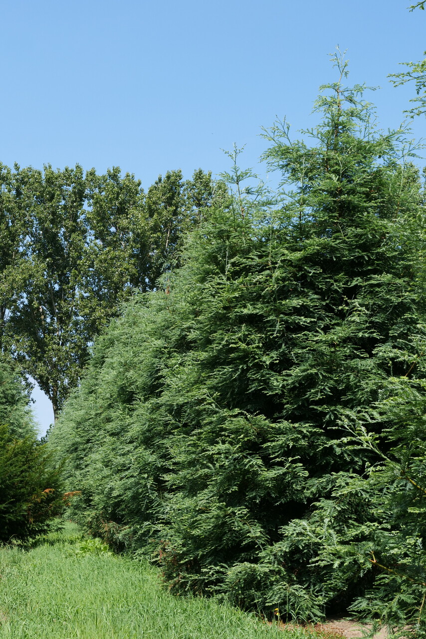 Sequoia sempervirens 'Winter Blue' can eventually reach a height of 30 m, fast growing, depending on the site and climate conditions.
