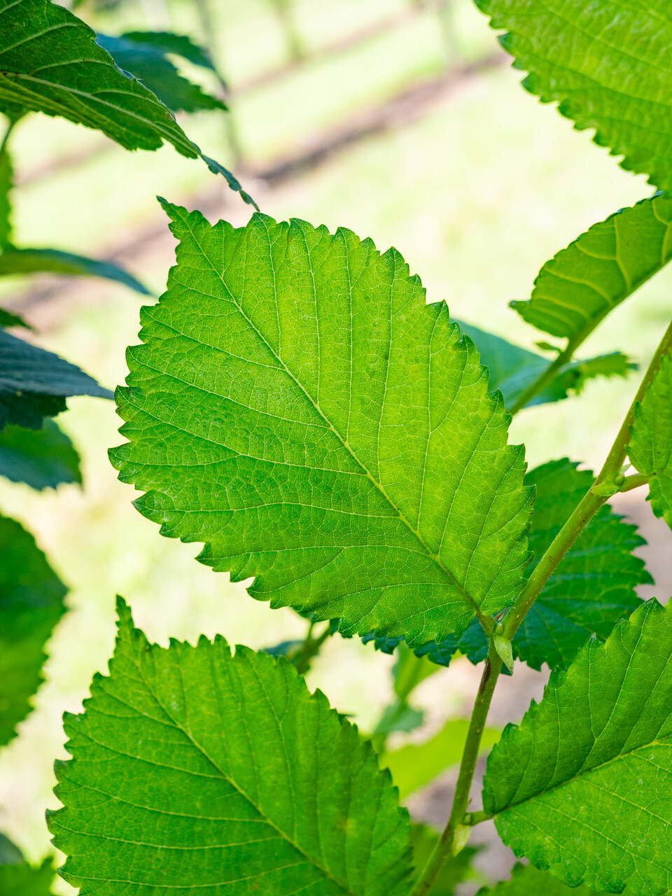 A Dutch cultivar from a cross between two seedlings in which U. glabra 'Exoniensis', U. hollandica 'Bea Schwarz' and U. wallichiana (from the Himalayas) were brought together. Forms a vertically ascending tree with lateral branches growing out at an angle. In its young years it is narrow pyramidal but later becomes broad pyramidal. Breadth 4 to 5 m. It is a vigorous grower forming a very dense crown with short branches growing close together. The fairly small rough leaves are dull dark green with dense veins and a double-serrated edge. They are bronze coloured when they emerge. They remain on the tree for a long time, often until late November. The light reddish-brown leaf buds are a remarkable feature. 'Lobel' is reasonably resistant to Dutch elm disease. Because it is very resistant to sea wind it is eminently suitable for use in the coastal provinces.