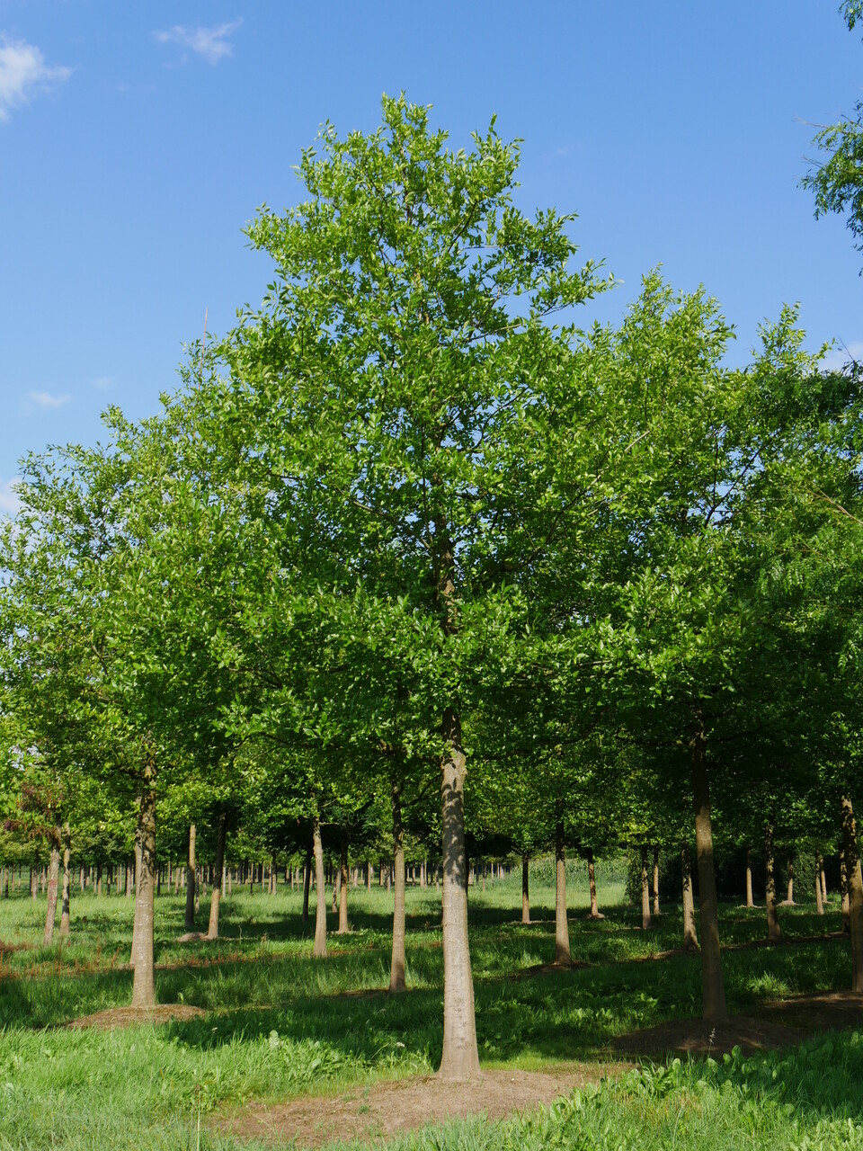 Fast growing, large tree with a fairly loose, umbel-shaped crown. The long, projecting and overhanging first-year twigs give the tree an elegant appearance. The twigs are dark brown, turning grey later. The leaves vary in shape from ovate to elliptical or obovate. The leaf’s underside has yellow to orange-yellow hairs, sometimes only on the veins. The inconspicuous flowers are followed by purple to orange, round drupes. Prefers warm summers. Prefers well-drained soil. Can tolerate drought and air pollution.