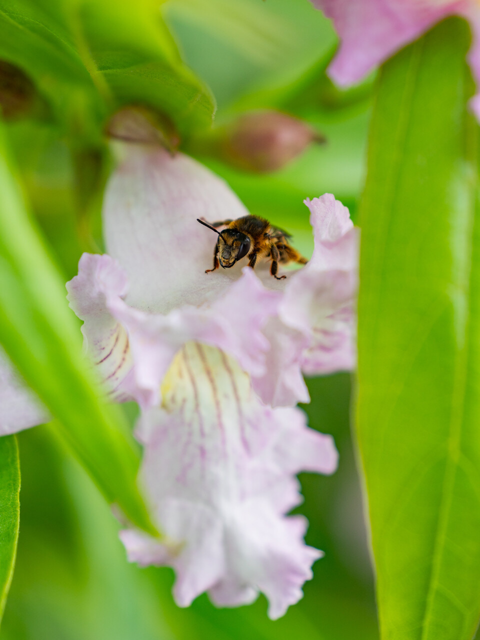 "Summer Bells" is a small tree or shrub (mature height 3-8 m) Hybrid between Chilopsis linearis and Catalpa bignonioides. The leaves are oblong and narrow. Chitalpa tashkentensis 'Summer Bells' flowers profusely with orchid-like, pale pink flower with yellow throat, flowering June - August, sweetly scented. Flowering starts early in summer and lasts about 2-3 weeks. A second flowering follows in mid-August. Chitalpa grows best in full sun, in well-drained soil. Susceptible to mildew in humid weather. Attracts bees and butterflies. Chitalpa is quite rare and therefore not widely available.