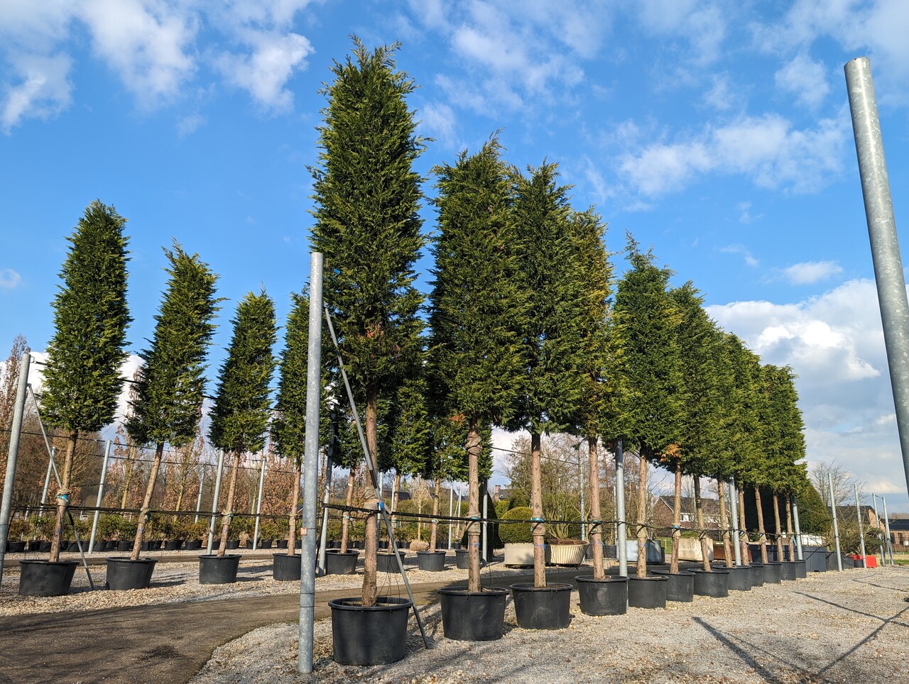 Large columnar to narrowly pyramidal conifer with dense branching, easily growing to a tree 15 to 30 m tall. The bark is reddish-brown and detaches into long, fibrous sheets later in life. The young twigs are green-yellow at first, later light red-brown. The foliage is dull mid-green. The tree grows in all soils, if well-drained and sufficiently moist, and also tolerates a lot of wind. Alongside various cultivars of Chamaecyparis lawsoniana and Thuja, it is among the most popular hedge plants. Its naturally narrow habit is an advantage when used as a hedge, and in addition, the tree prunes very well. Because of its vigorous growth, it should be pruned twice a year, creating a very dense hedge. The tree originated in 1888 from a cross between Chamaecyparis nootkatensis and Cupressus macrocarpa.
