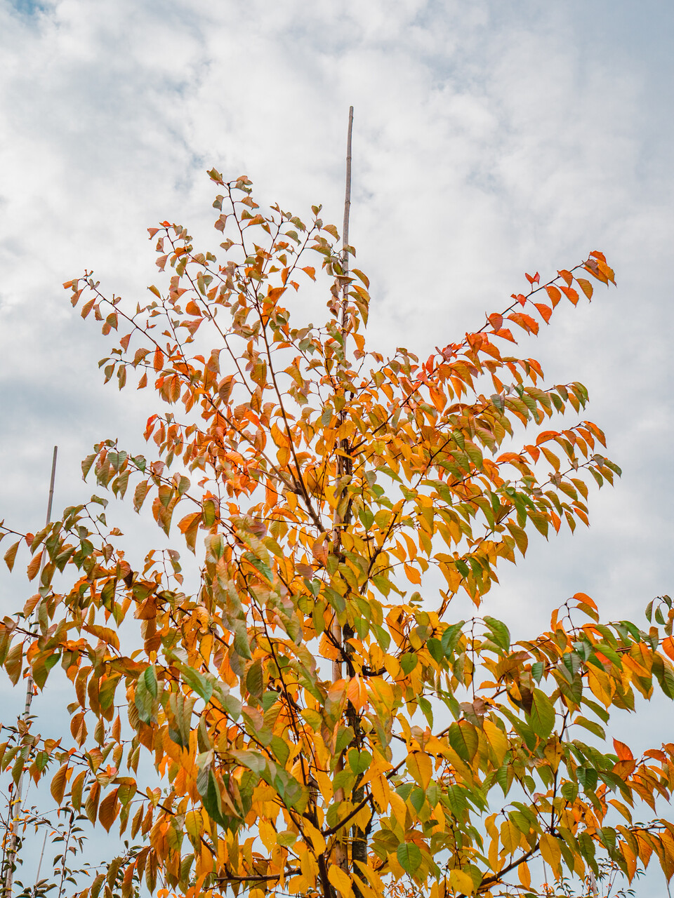 The leaves of Prunus ×yedoensis turn yellow in autumn.