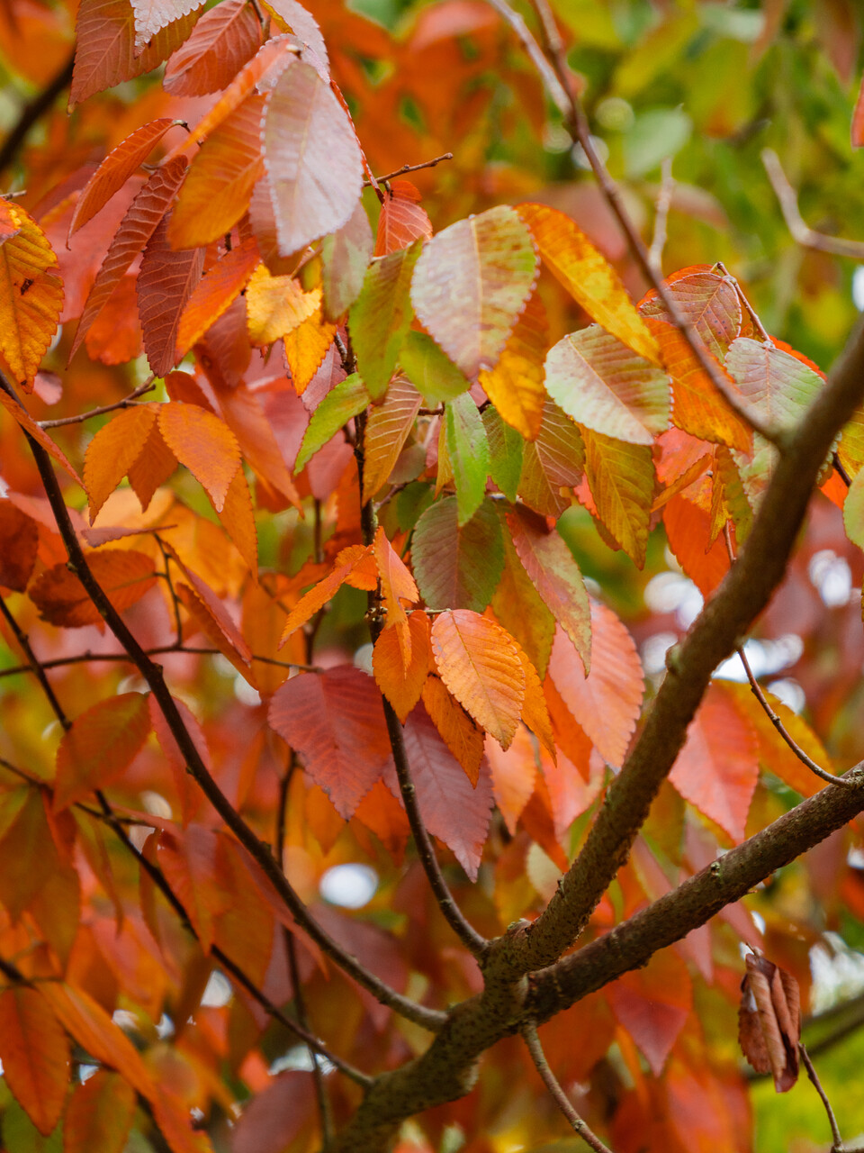The leaves of Zelkova schneideriana turn red in autumn.